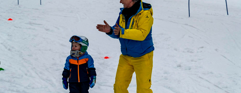 Als Highlight unseres Kinderskikurs fand am Samstag nachmittags das Abschlussrennen statt. Zunächst galt es für die Kids kreative Gruppennamen zu finden, dann die Rennstrecke zu besichtigen, um die Ideallinie zu finden und schließlich mit voller Begeisterung durch die Stangen zu flitzen. Während die Kids das Rennen völlig entspannt absolvierten, war die Anspannung bei den Ausbildern groß.